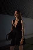 - видовжує силует за рахунок ледь завищеної талії і глибокого вирізу
